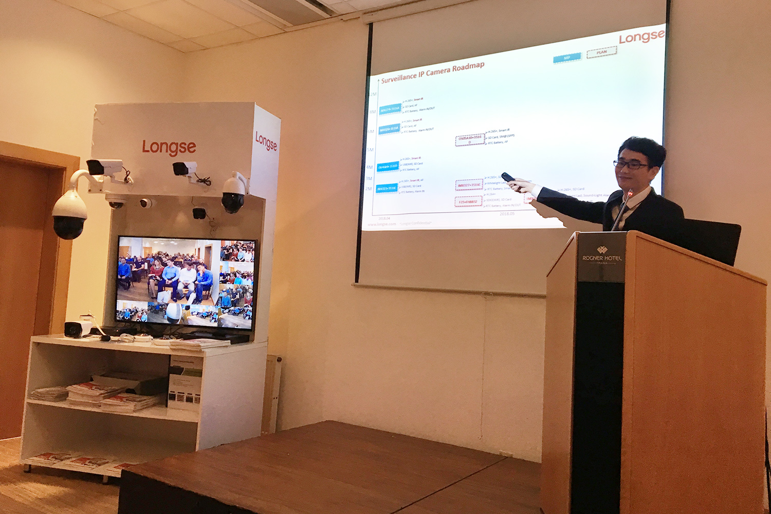 產(chǎn)品發(fā)布由長(zhǎng)視科技2018阿爾巴尼亞代理開(kāi)篇,垂直市場(chǎng)銷(xiāo)售工程師Ermal Sallaku為大家進(jìn)行了詳細(xì)解讀,重點(diǎn)介紹了PT球系列(PT5A、PT7E系列)、DIY套裝(Kits)、NVR系列、網(wǎng)絡(luò)高清系列(LBB60/90系列)、同軸高清系列(LBN24、LVWDC20系列)等明星級(jí)產(chǎn)品以及安防行業(yè)的前沿技術(shù)。在發(fā)布會(huì)過(guò)程中,展臺(tái)中的明星級(jí)攝像機(jī)發(fā)揮渾身解數(shù),在現(xiàn)場(chǎng)透過(guò)熒屏呈現(xiàn)高清盛宴,還原了會(huì)場(chǎng)燈光、顏色、人臉等細(xì)節(jié),讓與會(huì)合作伙伴深度及直觀地享受和了解2018年的最新產(chǎn)品與效果。