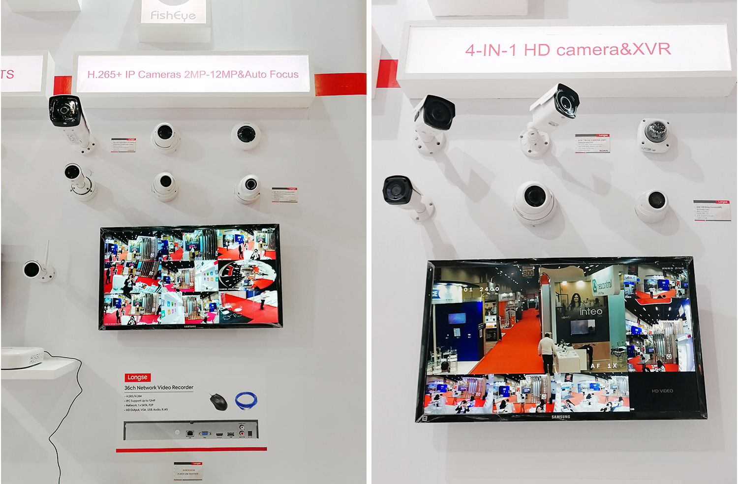 在展品展臺的H.265+網(wǎng)絡(luò)高清攝像機(jī)200萬至1200萬的產(chǎn)品系列及4合1同軸攝像機(jī)和XVR中,以360度廣角、高清、高靈敏度警示、多信號支持等特點,通過攝像機(jī)在現(xiàn)場實拍的畫面,它們充分展示了畫面中的每一處細(xì)節(jié),尤其是4合1同軸攝像機(jī)、白光警戒槍和魚眼,使得國內(nèi)外買家能近距離感受真實畫面帶來的極致體驗,并享受整個流暢過程,歷歷在目,為安防水平提升一個新高度。