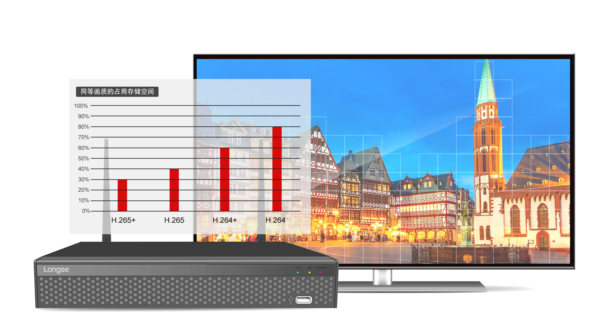 存儲空間對于攝像機(jī)也是尤為重要。長視4路Wi-Fi網(wǎng)絡(luò)硬盤錄像機(jī)支持H.265+、H.265、H.264+、H.264編碼標(biāo)準(zhǔn),能有效降低存儲空間的占用,并具有維持低碼流、高畫質(zhì)的優(yōu)勢。