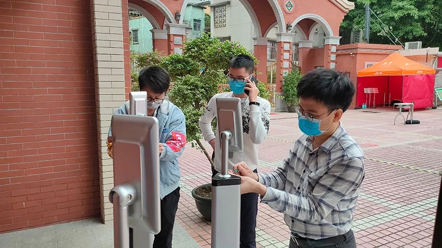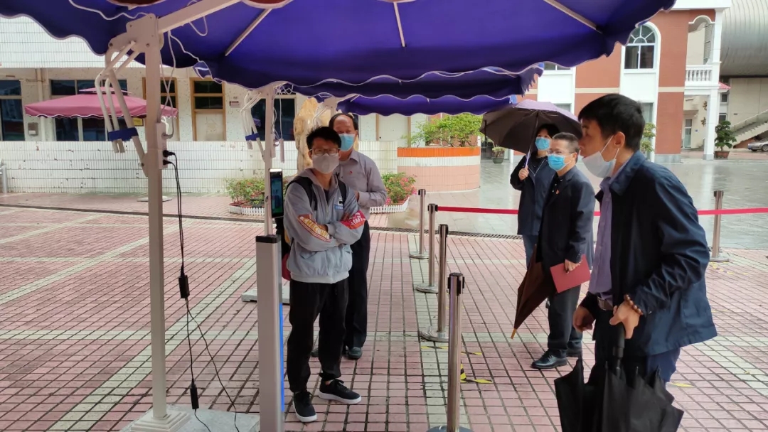 在設(shè)備安裝和數(shù)據(jù)錄入等步驟完成后,我們開始了AI人臉測溫識別終端的展示。11點左右,實驗中學(xué)迎來了教育局領(lǐng)導(dǎo)的蒞臨指導(dǎo),期間AI人臉測溫識別終端也得到了展示機(jī)會。AI人臉測溫識別終端能夠在0.5-1.3m范圍內(nèi)同時進(jìn)行體溫檢測、人臉識別和口罩識別,AI人臉測溫識別終端的表現(xiàn)也得到了教育局和學(xué)校領(lǐng)導(dǎo)的認(rèn)可。